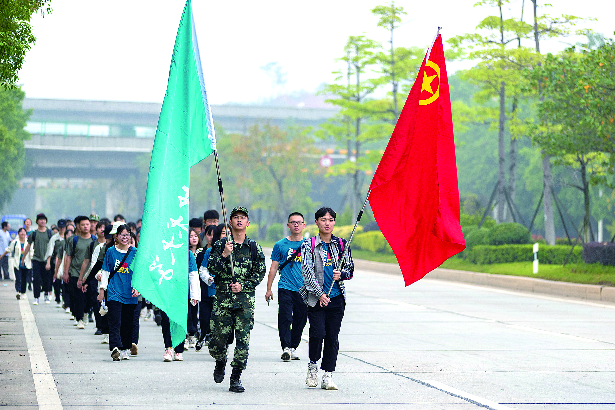 师生徒步丈量红色旅程 5月4日凌晨5:04,本应是静谧的假期清晨,但泉州职业技术大学晋江校区却格外的热闹。100名师生早早起床、整装待发,他们将徒步20公里前往晋江新塘街道梧林传统村落,用脚步丈量城市红...