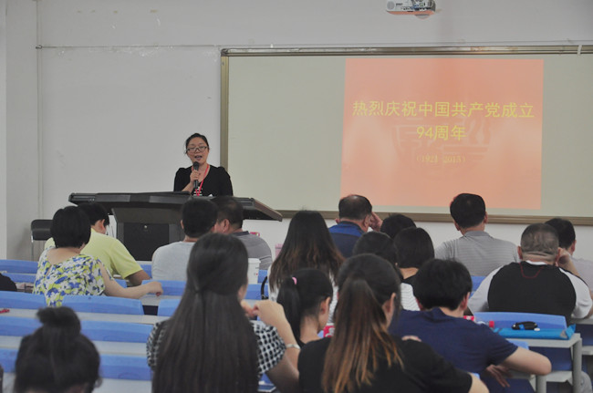 党委副书记黄志梅通宣读表彰文件 党委书记吴金营同志作重要讲话 为纪念中国共产党成立94周年,7月1日晚,校党委在教学楼238隆重举行庆祝建党94周年暨党建工作总结表彰大会,校领导及全体党员约120人参加...