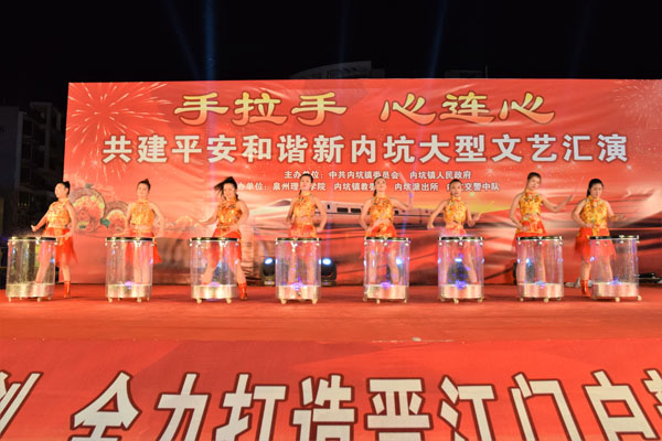 文艺汇演上精彩的表演 晚会结束后,参与表演的师生们与部分领导合影留念 4 月27日 晚7点,在晋江市内坑镇新华都举办了以共建平安和谐新内坑为主题的大型文艺汇演,此次活动由中共内坑镇委员会、内坑镇...