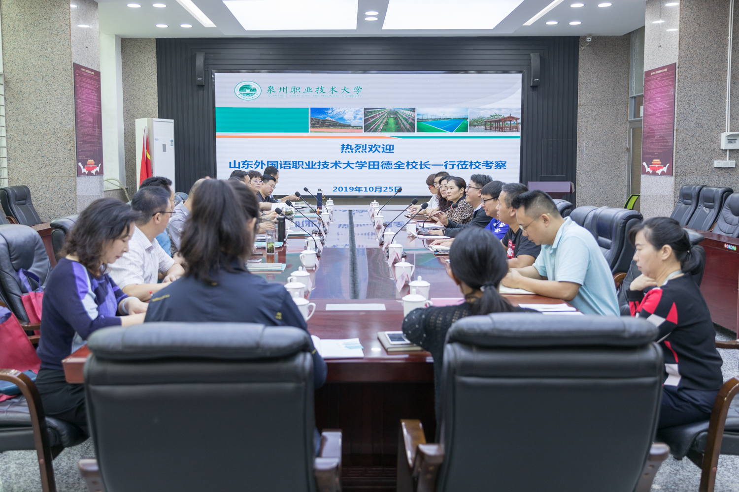 10月25日下午,山东外国语职业技术大学校长田德全、副校长兼科技处处长孔庆荣等一行莅临我校,我校副校长郭霏霏、副校长林文艺等陪同参观,并出席座谈会。 田德全校长一行先后参观了校史馆、数字媒体中心、绿色建...