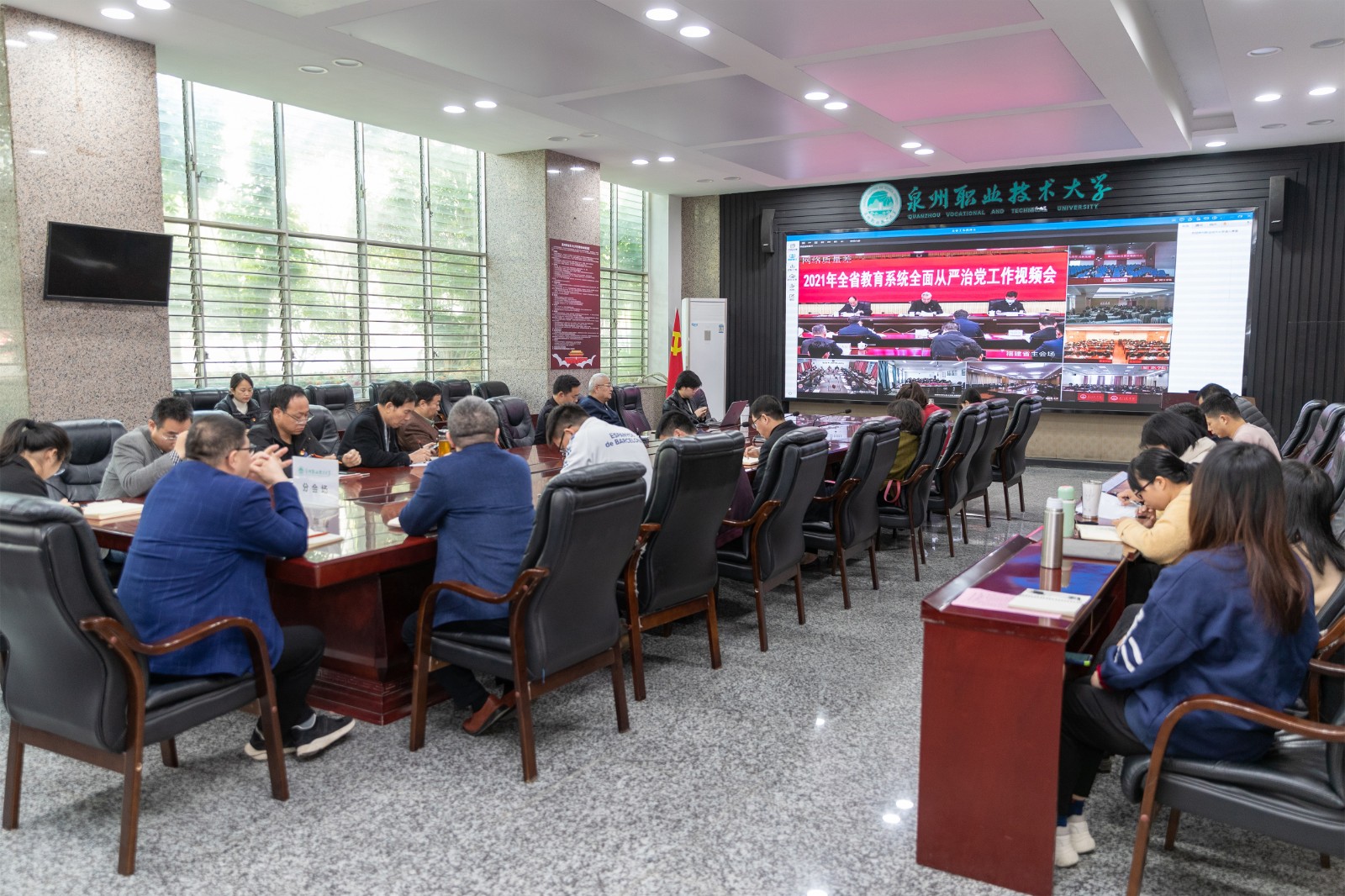 3月8日上午,2021年全省教育系统全面从严治党工作视频会在福州召开,我校设立分会场,学校党政领导班子、各党群部门、各党支部书记参加会议。 会议主要深入学习贯彻习近平总书记在十九届中央纪委五次全会上的重要讲...