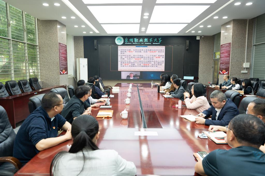 4月26日下午,泉州职业技术大学举行学习贯彻习近平新时代中国特色社会主义思想主题教育读书班开班式暨党委理论学习中心组学习(扩大)会。省委教育工委、省教育厅学习贯彻习近平新时代中国特色社会主义思想主题教育协调推进五组组长林其天莅会指导,中央马克思主义理论研究和建设工程首席专家郑传芳教授应邀莅校作《学习<习近平著作选读>第一、二卷》专题辅导报告,校党委书记傅志雄主持会议。傅志雄作读书班动员讲话。他指出,...