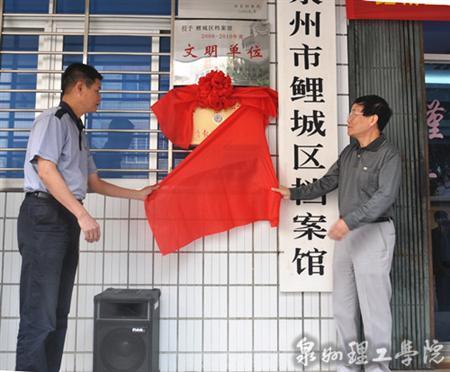 10月18日上午,泉州理工学院又一“素质教育实践基地”——鲤城区档案馆正式签约挂牌成立。签约暨挂牌仪式在鲤城区档案馆隆重举行,泉州理工学院名誉院长苏志明,鲤城区委常委、区纪委书记刘汉升出席仪式并为“素质教...