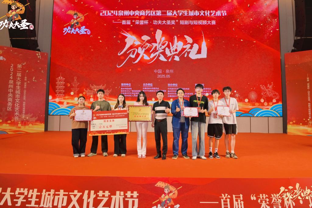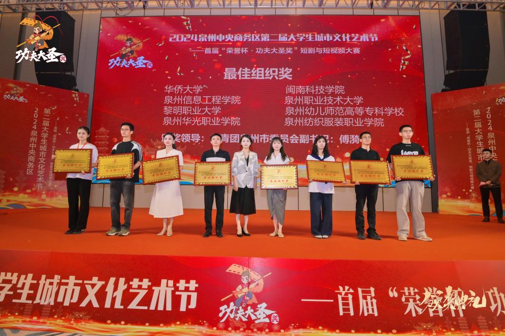 5月30日,2024泉州中央商务区第二届大学生城市文化艺术节——首届“荣誉杯·功夫大圣奖”短剧与短视频大赛颁奖仪式在泉州荣誉国际酒店举行。本次活动由泉州市教育局、市文旅局,丰泽区委、区政府指导,由团市委、泉州中央商务区丰泽区指挥部主办,丰泽区委宣传部、区教育局、区文体旅游局、团区委协办。