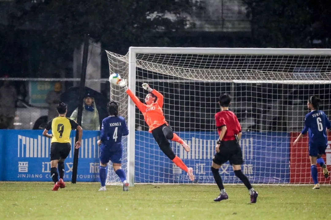 东华大学队1号门将路梦珂扑出对手射门,本场比赛路梦珂多次将皮球挡在门外