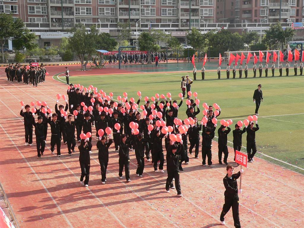 碧空万里无云,操场旗海翻彩。
