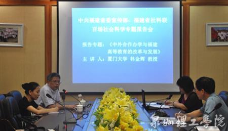 上午,厦门大学林金辉教授应泉州理工学院邀请,赴泉前来作题为“中外合作办学与福建高等教育的改革与发展”的专题报告,校领导、部分教职工前往参加。