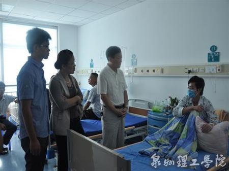 6月14日一大早,泉州理工学院校长苏志明、党委副书记黄志梅便在学工处处长郭变玲、数字传媒系党总支书记王慧、校学生会主席等的陪同下,带着募捐而来的捐款现金,前往泉州市第一医院,探望在此接受治疗的2012届罹患白血病学子肖立诚。截止日前,校领导多次前往慰问,累计共送去善款现金61210.8元。