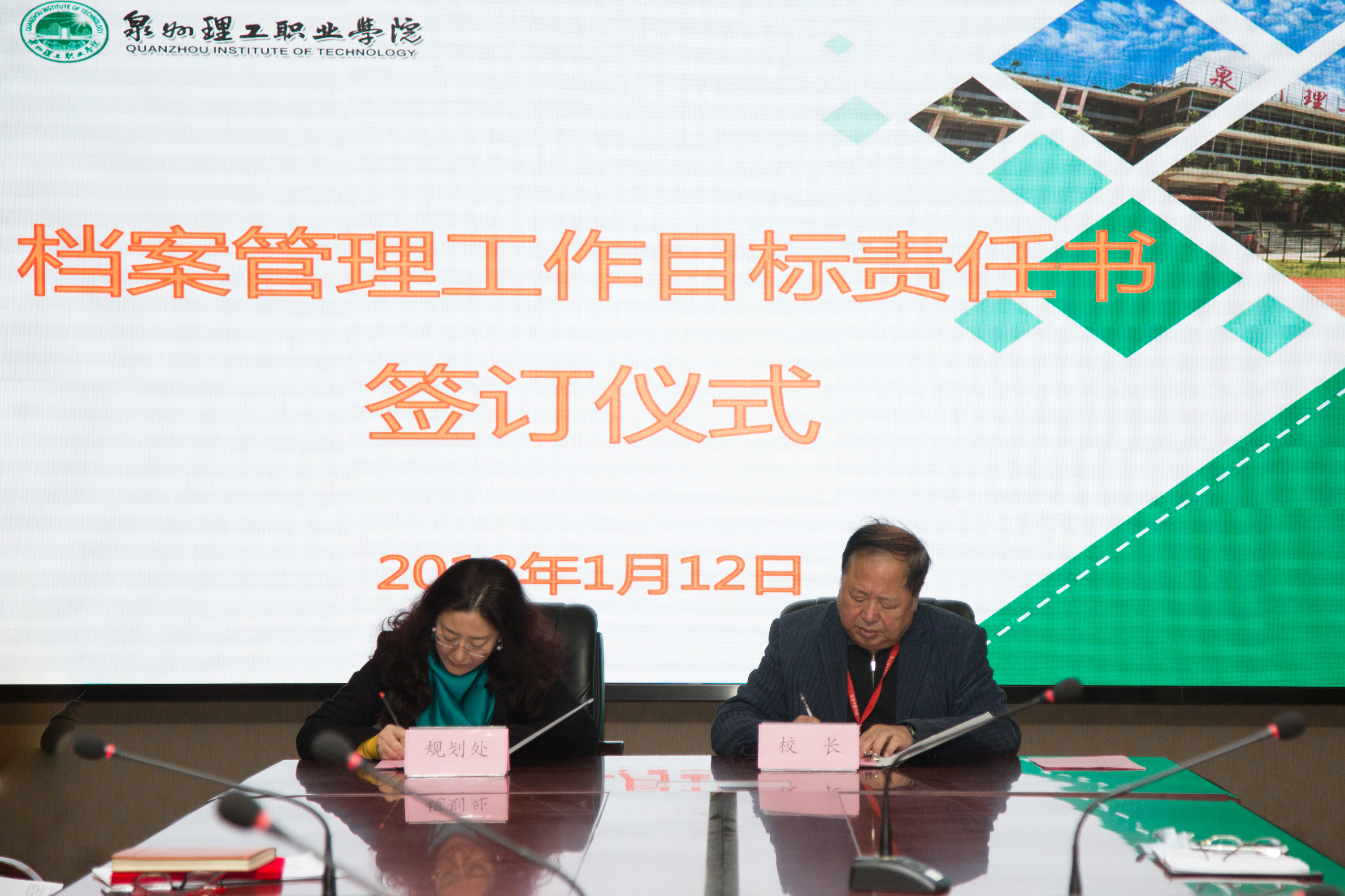 会议第三个议程签定《泉州理工学院档案管理工作目标责任书》为了建立一个与学校教学、科研、管理等工作相适应的门类齐全、结构合理、管理科学、服务有效的档案工作体系,根据《泉州理工学院档案管理办法》,制定本目标管理责任状,并共同遵守所签条款。