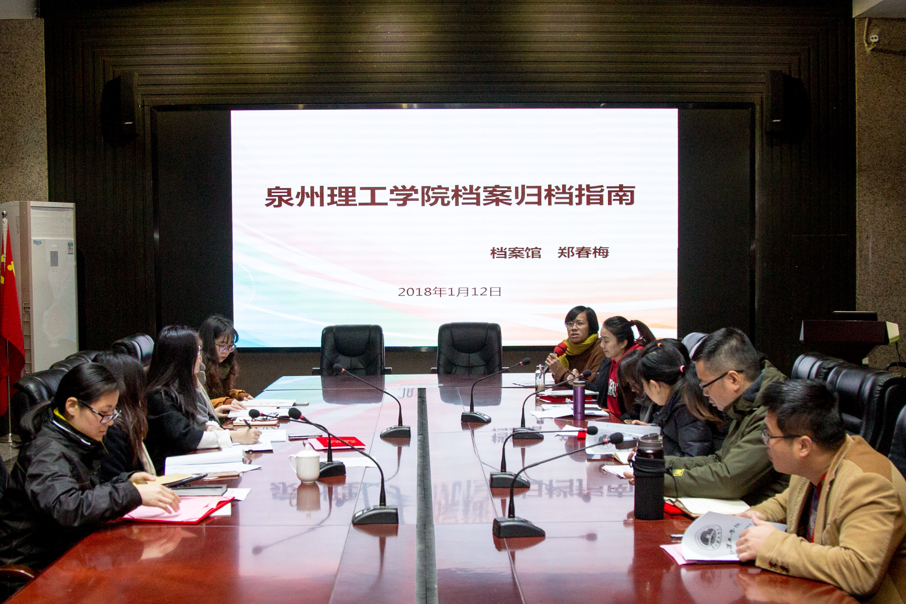 会议第个议程由郑春梅馆长进行兼职档案员培训,为大家讲解档案的归档范围、归档步骤、分类等,使各部门兼职档案员能更加系统地了解档案的整理规范,为今后的工作得以顺利的开展,还需各单位同仁的支持,把档案工作做到更好,为学校的长远发展做出贡献。