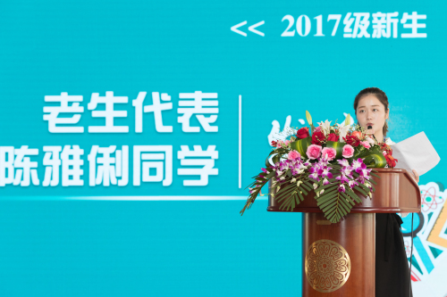 工学院16级油气储运技术专业,陈雅俐同学作为老生代表发言,分享就读泉理工一年来的真切感受和新生们共勉。建筑系17级建筑工程技术专业卢春元同学作为新生代表发言,他代表全体新同学,郑重承诺一定严守校纪校规,勤奋刻苦学习,讲究文明礼貌,注重团结协作,做一名品学兼优的新时代大学生!