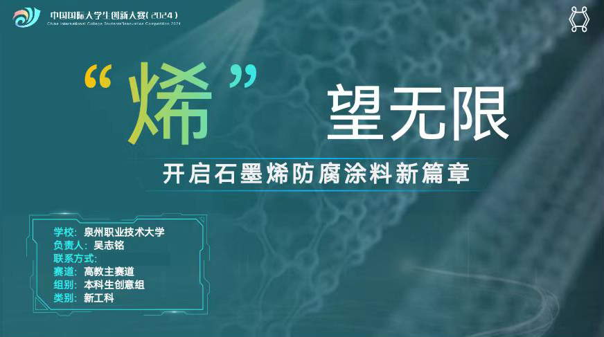 项目通过一款用于金属表面的海洋防腐涂料,解决了在海洋环境下,用在金属表面的防腐涂料易脱落、寿命短、污染重的核心痛点。项目负责人吴志铭表示此次项目不仅充分运用了专业知识,还学习了其他领域的相关知识,同时团队在观摩其他高校的过程中也能获得经验和灵感,认识到自己的不足。项目指导老师马钰在备赛过程中与团队成员们共同面对各项挑战,解决难题,引导学生深入探索学术前沿与行业需求,她表示学生团队的拼搏精神和共同努力是项目成功的关键。希望今后能够有更多的同学参与进来,共同在创新创业的舞台贡献自己的青春力量。