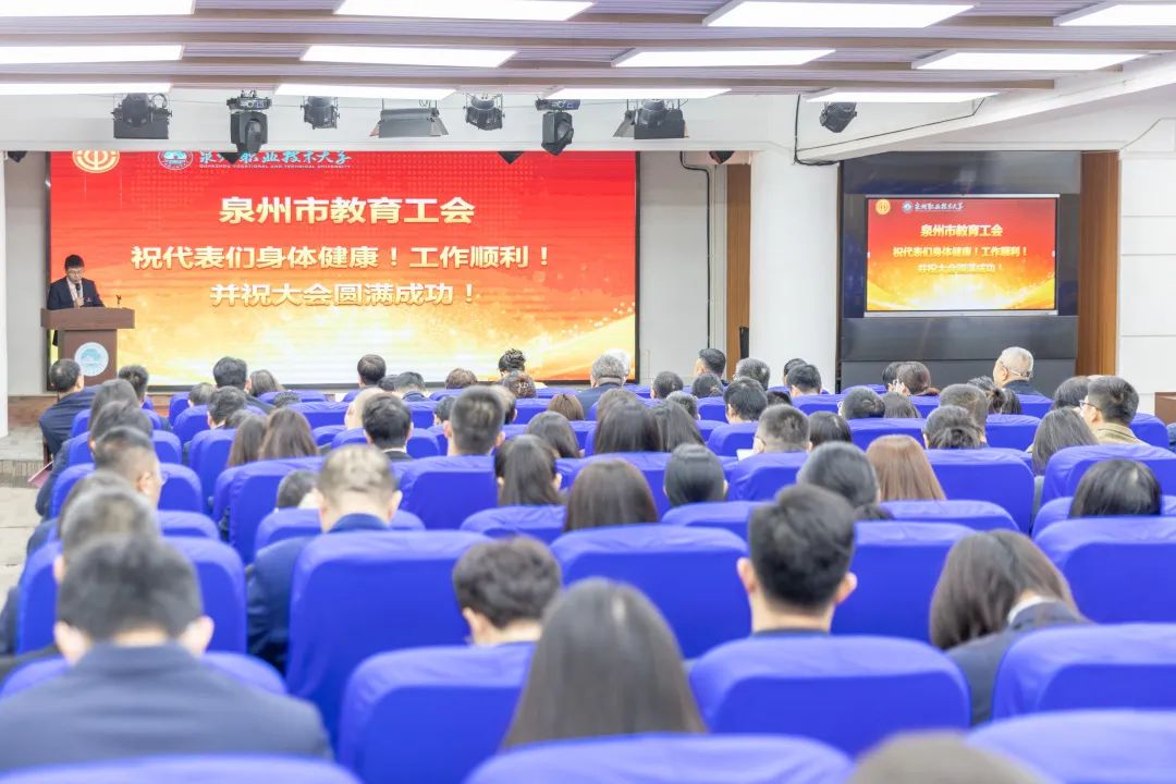 1月20日,泉州职业技术大学工会第四次代表大会和第四届一次教职工代表大会分别在我校A633报告厅隆重召开,学校创办人/董事长吴金营、泉大教育基金会理事长杨培琛、校长吴滨如、校党委书记傅志雄,校领导林其天、来永宝、吴建生、姚丹、蔡金佩、张建军、林文艺、张文协、苏康敏、王巨斌及工会会员代表、教职工代表出席开幕式。大会由校党委副书记、副校长蔡金佩主持。