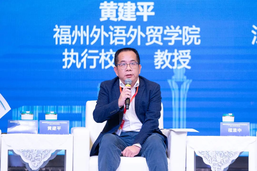 圆桌讨论环节,由厦门南洋职业学院董事长鲁加升教授主持,福州外语外贸学院执行校长黄建平教授、江苏财经职业技术学院原校长程淮中教授、金华职业技术大学原副校长成军教授、泰安技师学院党委书记毕于民教授等4位嘉宾,围绕“数智化与高等教育变革·挑战、前景与策略”的主题发表见解。