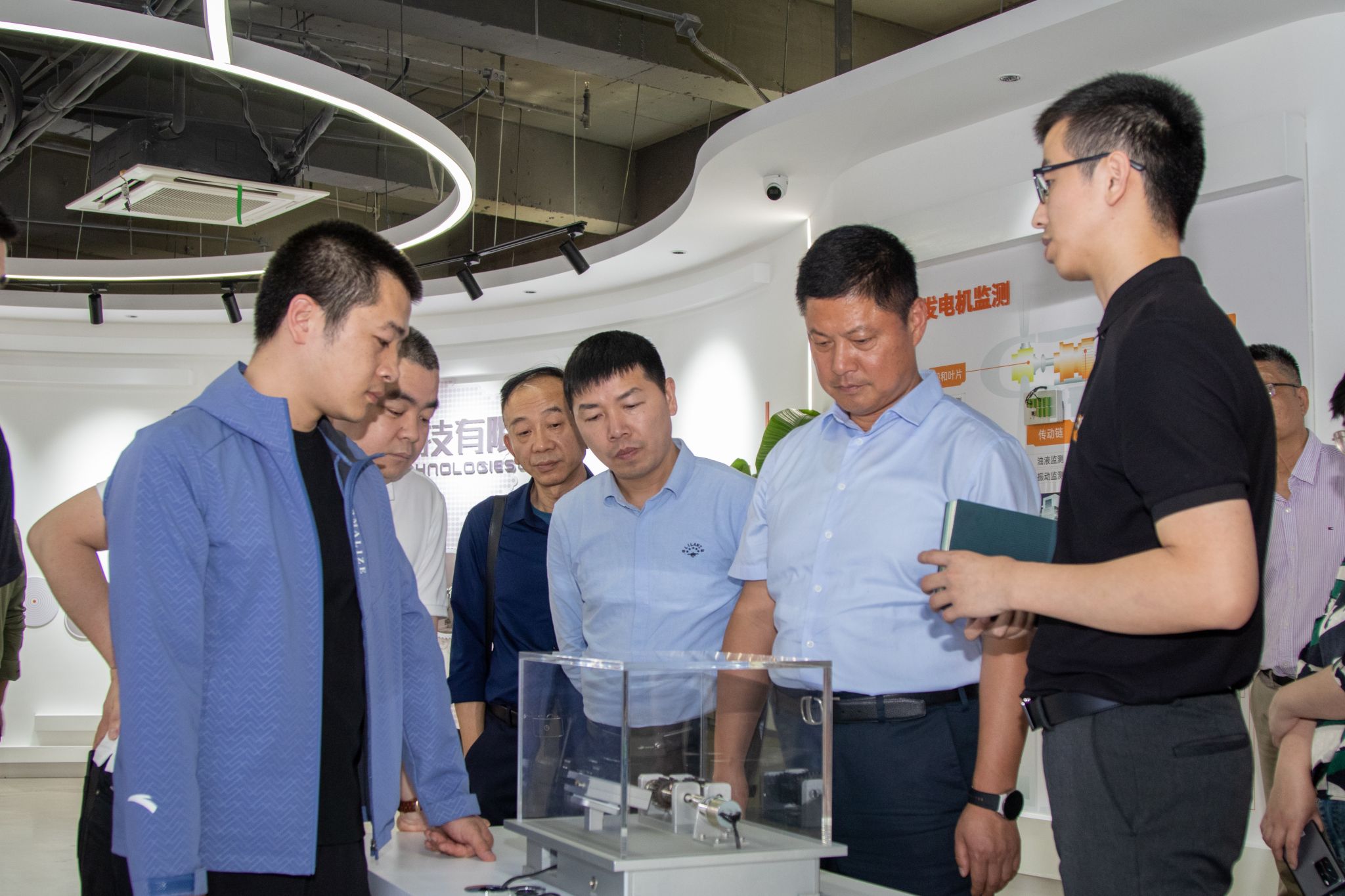 在工作人员的带领下,我校一行现场体验了机器听诊大师的设计模型,对全感知智能硬件、AI算法以及云服务赋能工业智能运维、智能制造等多个数字化经济领域产品和标准化解决方案的最前沿,有了更进一步的了解。