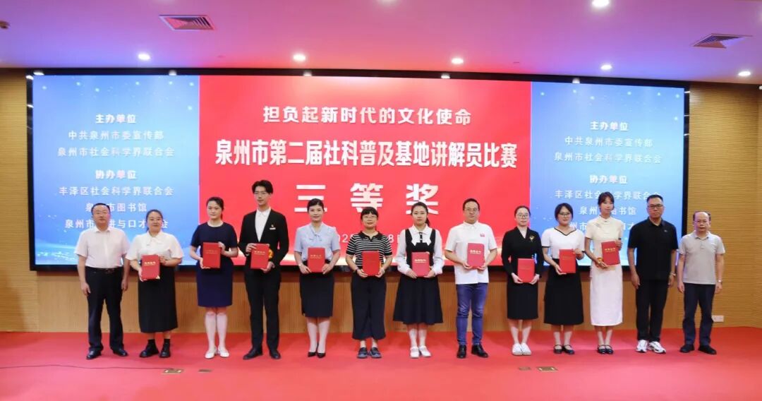 7月8日,在中共泉州市委宣传部、泉州市社会科学界联合会主办的第二届社科普及基地讲解员比赛中,我校2023级学前教育专业侯吴疆同学荣获三等奖。侯吴疆以我校传统文化传承基地为切入点,将提线木偶、泉州刻纸等非遗技艺的传承实践,与“文化强市”建设的时代命题紧密结合,生动诠释了社科普及基地在“推动文化繁荣、担负文化使命”中的责任与担当。其解说既展现了泉州历史文化的深厚底蕴,又彰显了我校“项目驱动、服务地方”的职教特色。