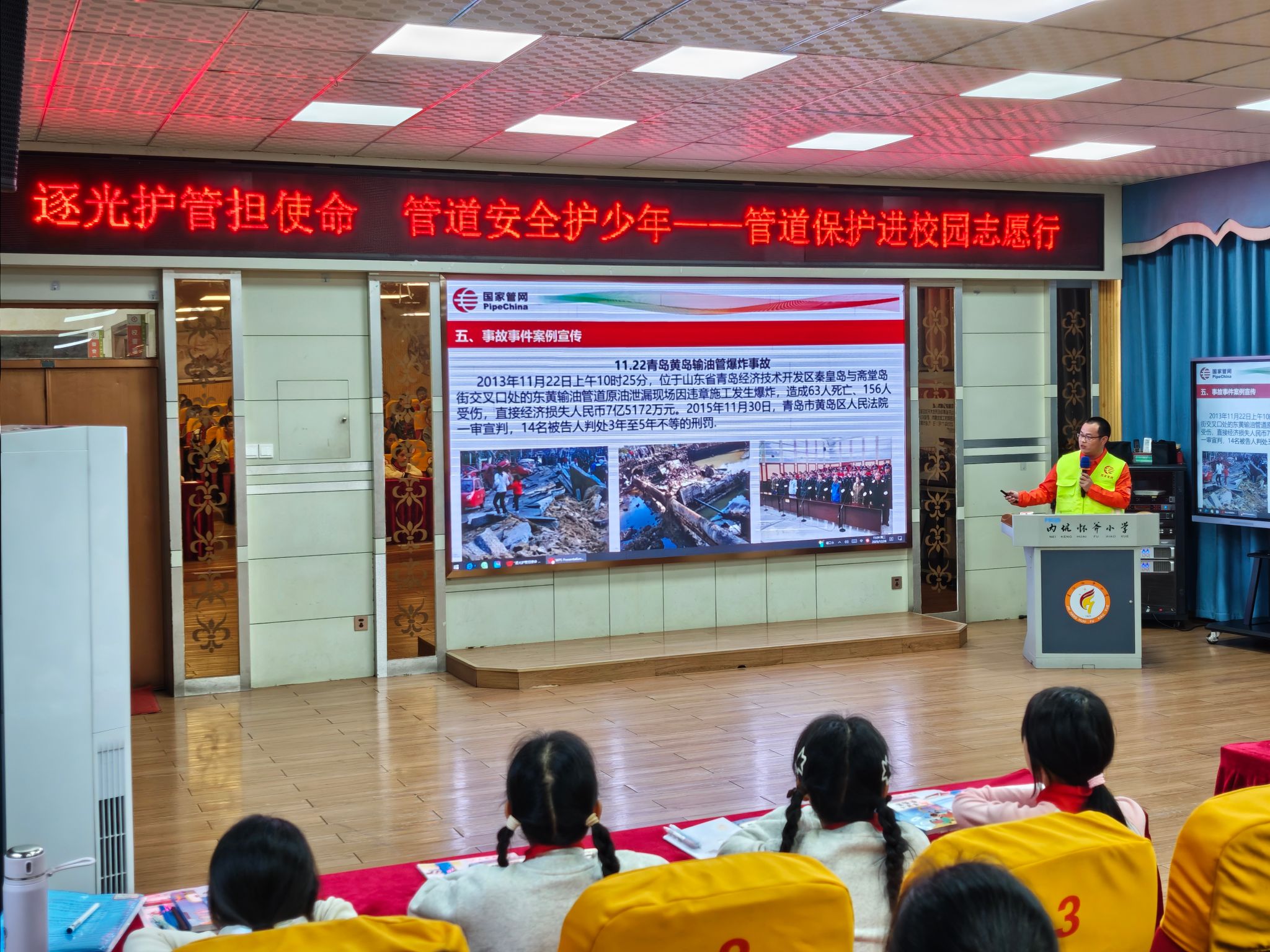 12月24日,国家管网集团福建公司泉州作业区青年志愿服务队与我校四实书院“逐光护管”志愿服务队携手走进晋江市怀斧小学,共同开展“守护少年安全·管道保护进校园”主题宣讲活动。本次活动聚焦管道保护与能源安全意识培育,以专业讲解结合趣味互动的方式,为小学生们带来了一堂生动深刻的安全教育课。