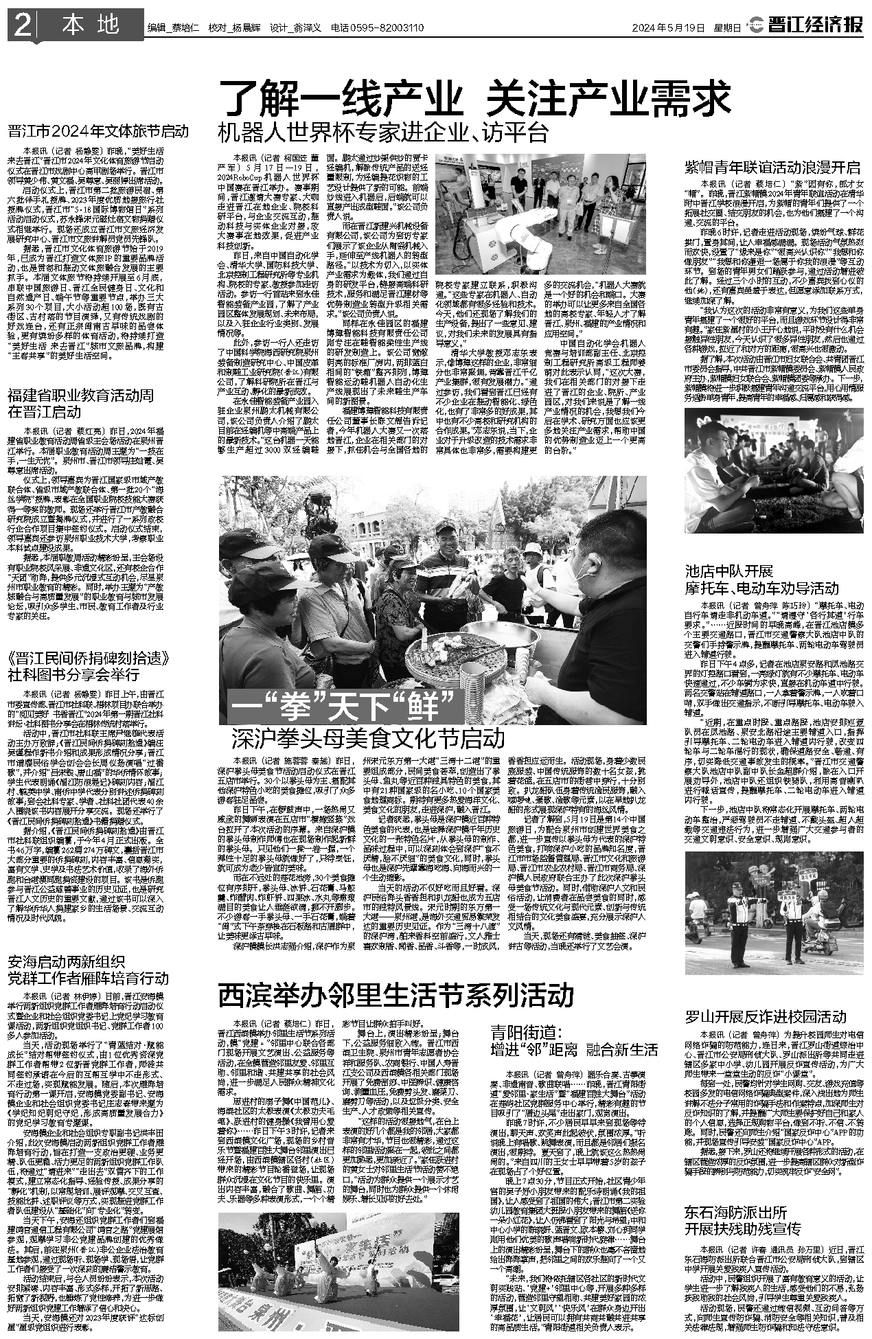 本报讯 (记者 蔡红亮) 昨日,2024年福建省职业教育活动周省级主会场活动在泉州晋江举行。本届职业教育活动周主题为“一技在手,一生无忧”。泉州市、晋江市领导庄灿霞、吴尊意出席活动。