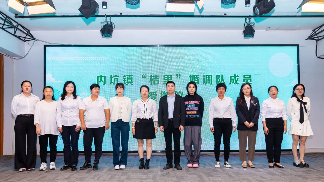 活动中,还举行内坑镇婚姻家庭矛盾纠纷化解联络点揭牌,并为内坑镇“桔里”婚调队成员授徽。