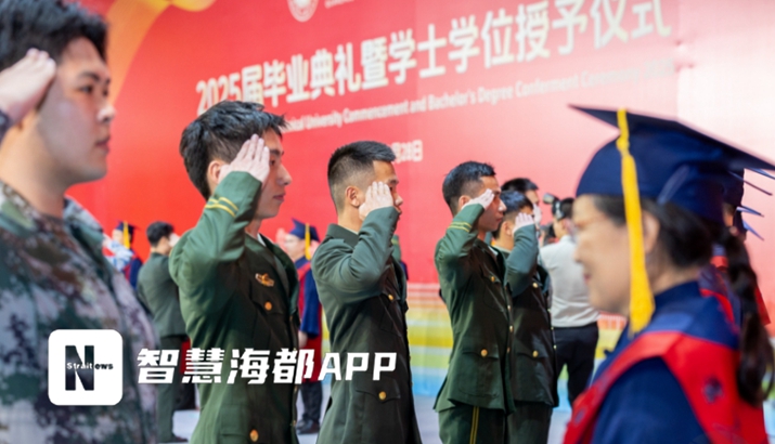6月28日下午,在泉州职业技术大学2025届毕业典礼上,一个由退役军人组成的班级在接受拨穗礼后,学士服秒变军装,整齐又帅气的军礼引燃全场。