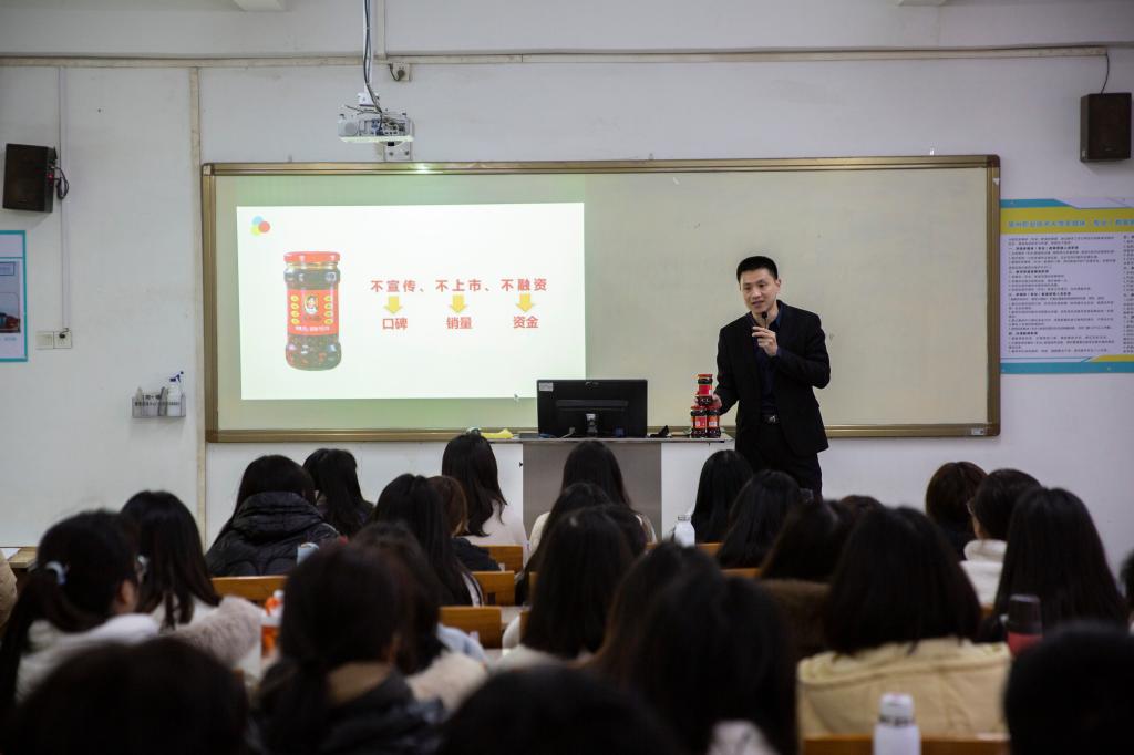 ▲ 郑伟清将老干妈摆上讲台