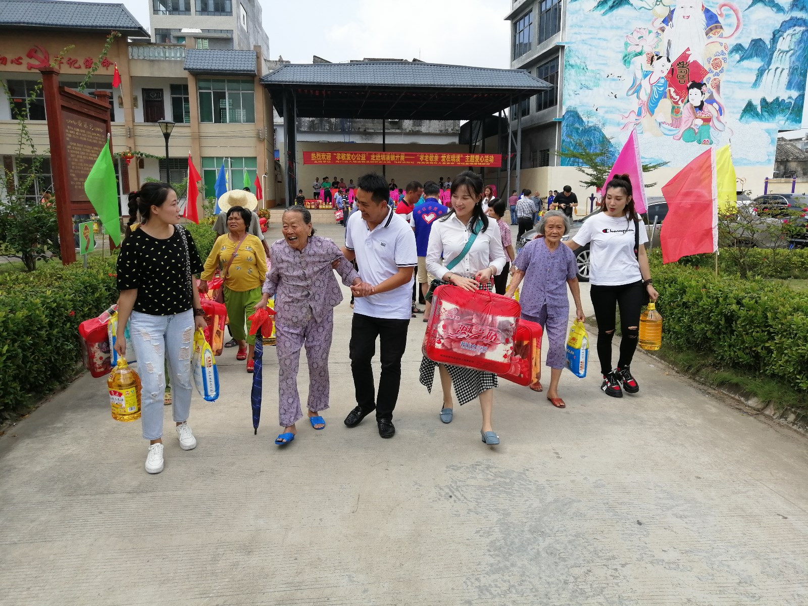 本次活动由海南孝敬爱心公益团队联合海南省残疾人基金会、海口边检总站轮训大队共同发起,活动为孤寡老人们捐赠了5万元的爱心物资,包含粮油、棉被和每人500元慰问金等。