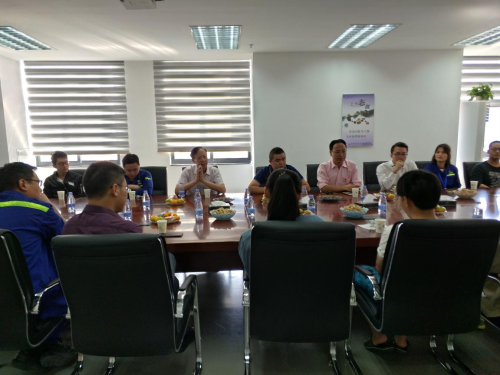 2017年10月24日,工学院院长陈其生同志,工学院党总支书记吴茶水同志,能源系主任王为民教授与15级辅导员曾子石老师到校企合作单位闽海石化有限公司关心学生近期情况。