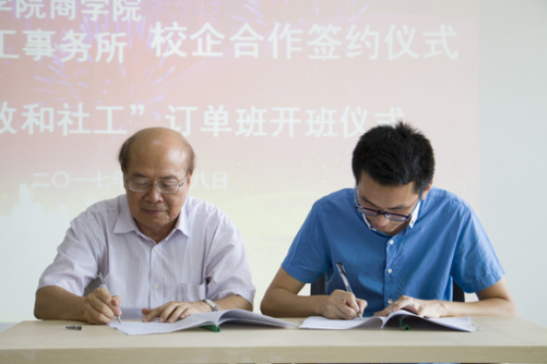 福建省民政厅社会工作专业人才队伍建设专家组成员、福建省致和社会组织孵化与创新中心主任夏晋城先生在签约仪式上表示,与商学院开展校企合作是一个非常好的契机,希望双方逐步落实合作事宜,实现校企双赢、优势互补、资源共享,进一步提高人才培养质量,深化校企合作办学模式, 同样也希望本次的订单班工作顺利进行!