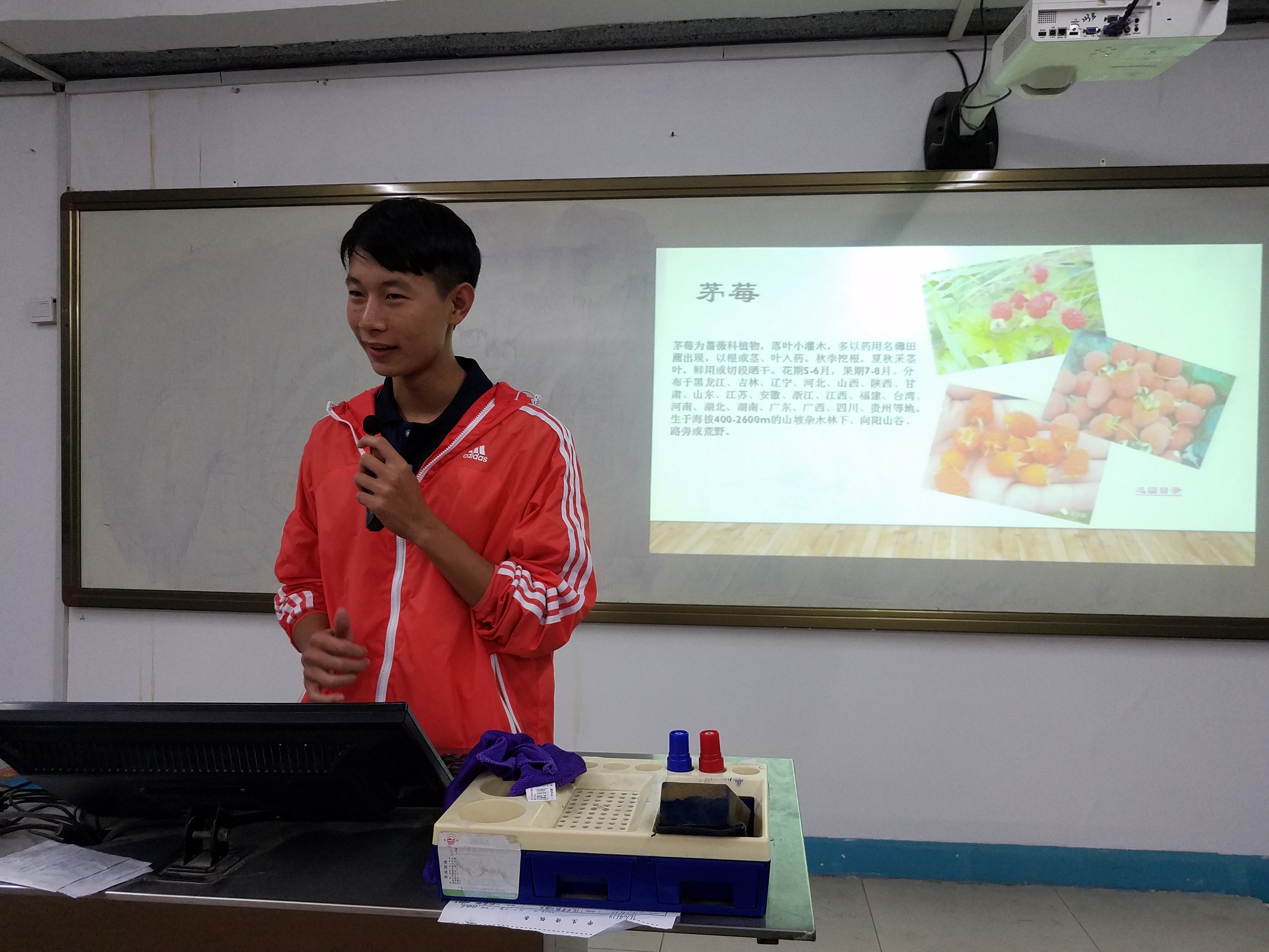 课堂上,同学们展示自己家乡的野果和野菜